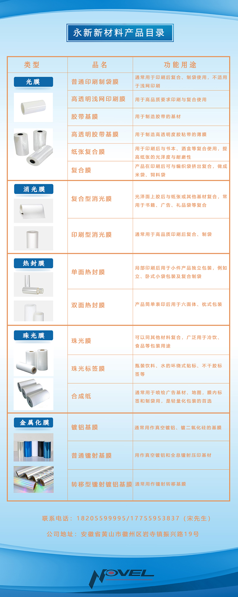 黃山永新新材料有限公司成立于2020年1月,是黃山永新股份有限公司設立的全資子公司。是永新股創新膜產業升級、引領行業發展的戰略投資項目,成為永新股份“軟包裝+膜材料”產業發展戰略中邁出的關鍵一步,致力于為客戶提供不同規格、多種用途的高性能薄膜產品。