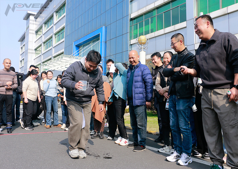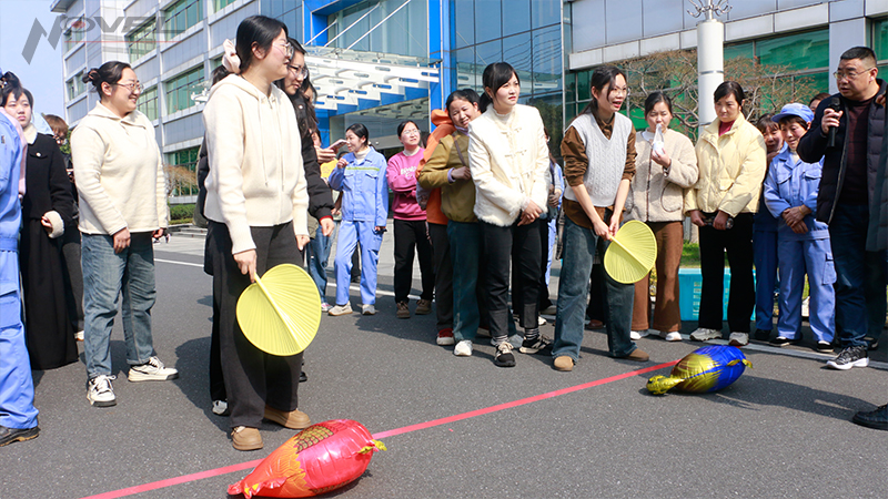 隨后,婦女節趣味活動在三期辦公樓前生動開展。安環辦鄭際生經理為大家強調活動安全注意事項,工會委員徐新建解讀趣味活動規則。